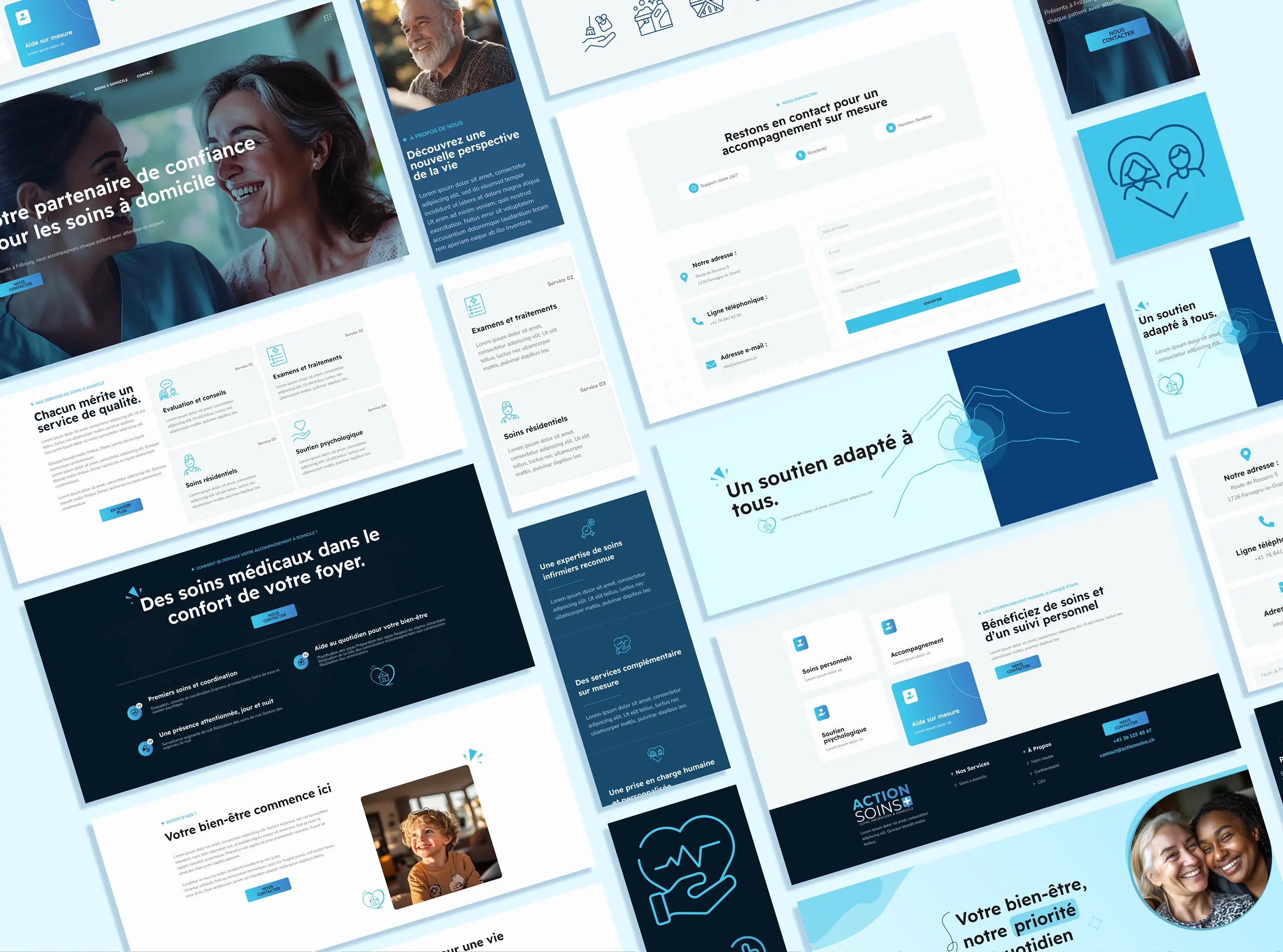 Nous avons conçu un site simple, structuré et chaleureux, mettant en avant les différents services de soins et de soutien à domicile. Chaque page a été pensée pour offrir une lecture fluide et permettre aux visiteurs de trouver facilement l’information recherchée.