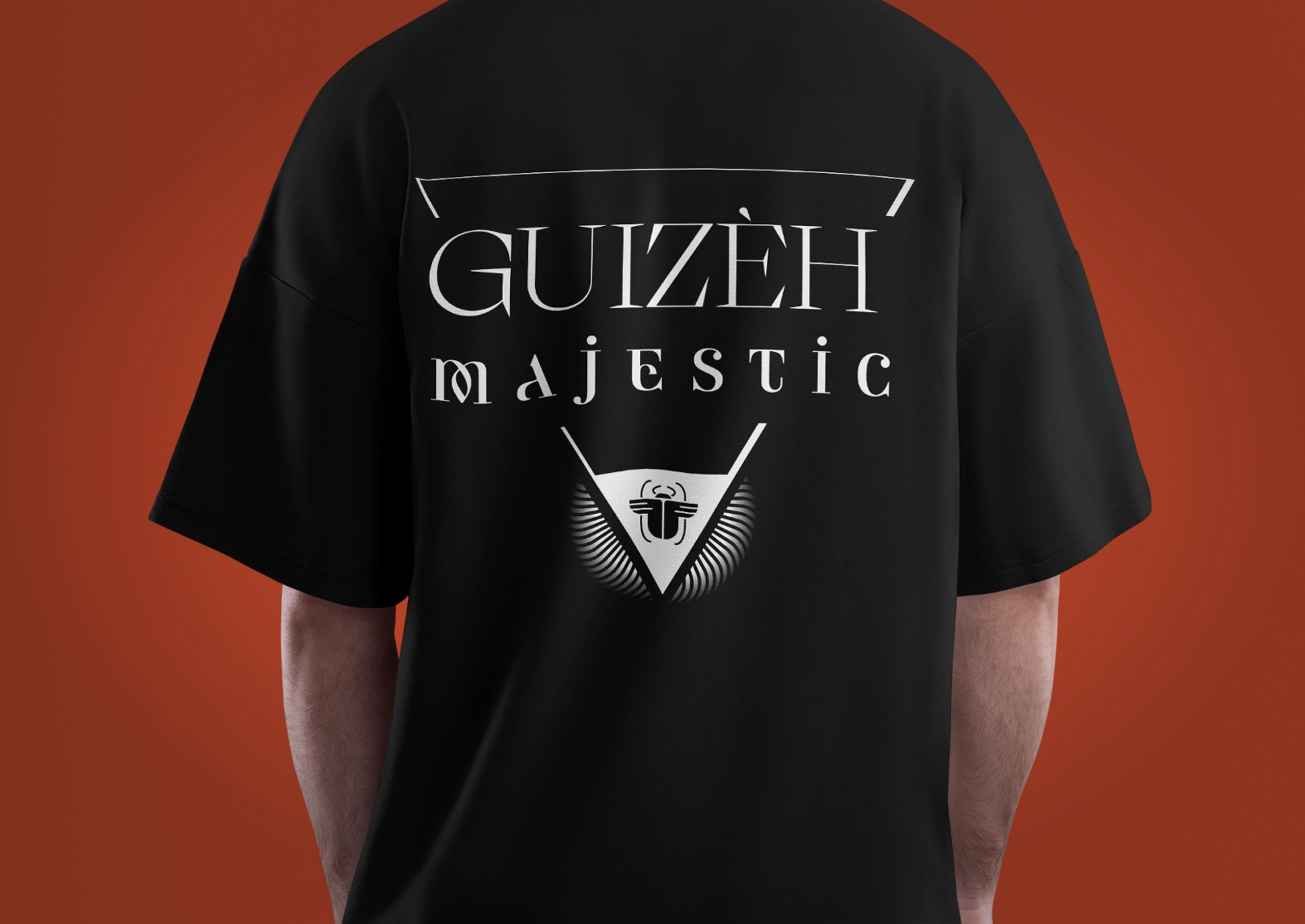 Guizèh Majestic est une marque souhaitant affirmer une identité forte et reconnaissable, destinée à être déclinée aussi bien sur des supports digitaux que physiques, tels que des vêtements ou des publications sur les réseaux sociaux.